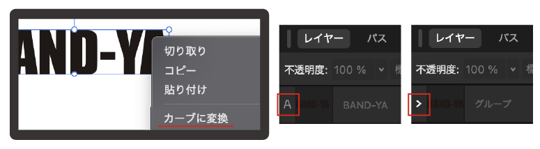 対象のテキストを選択後、右クリック[カーブ変換]を行ってください。正常に変換が行われている場合、上部メニューでフォント変更ができなくなりレイヤーの「フォント要素」が「グループ要素」に変わります。